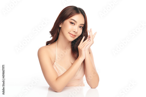 Beautiful young asian woman with clean fresh skin on white background, Face care, Facial treatment, Cosmetology, beauty and spa, Asian women portrait.