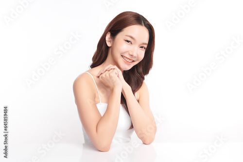 Beautiful young asian woman with clean fresh skin on white background, Face care, Facial treatment, Cosmetology, beauty and spa, Asian women portrait.