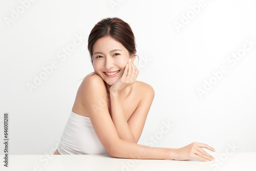 Beautiful young asian woman with clean fresh skin on white background, Face care, Facial treatment, Cosmetology, beauty and spa, Asian women portrait.