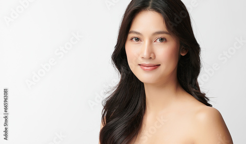 Beautiful young asian woman with clean fresh skin on white background, Face care, Facial treatment, Cosmetology, beauty and spa, Asian women portrait.