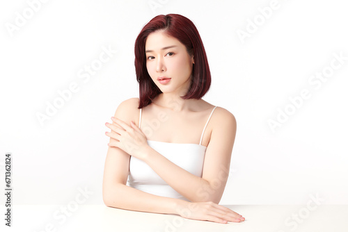 Beautiful young asian woman with clean fresh skin on white background, Face care, Facial treatment, Cosmetology, beauty and spa, Asian women portrait.
