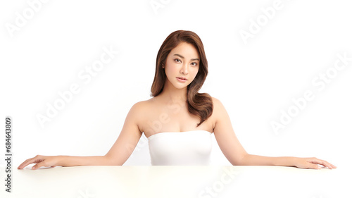 Beautiful young asian woman with clean fresh skin on white background, Face care, Facial treatment, Cosmetology, beauty and spa, Asian women portrait.