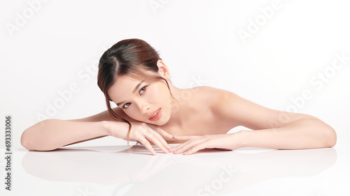Beautiful young asian woman with clean fresh skin on white background, Face care, Facial treatment, Cosmetology, beauty and spa, Asian women portrait.
