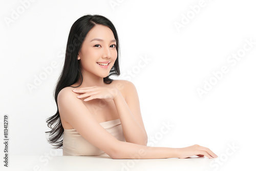 Beautiful young asian woman with clean fresh skin on white background, Face care, Facial treatment, Cosmetology, beauty and spa, Asian women portrait.