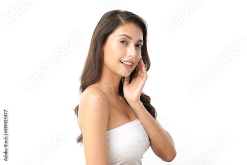 Beautiful young asian woman with clean fresh skin on white background, Face care, Facial treatment, Cosmetology, beauty and spa, Asian women portrait.