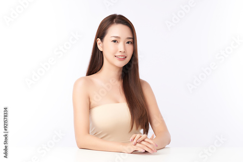 Beautiful young asian woman with clean fresh skin on white background, Face care, Facial treatment, Cosmetology, beauty and spa, Asian women portrait.