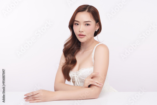 Beautiful young asian woman with clean fresh skin on white background, Face care, Facial treatment, Cosmetology, beauty and spa, Asian women portrait.
