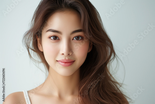 Beautiful young asian woman with perfect healthy smooth skin facial portrait isolated background
