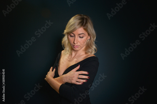Beautiful young blonde woman with blue eyes isolated on back