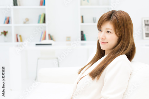Beautiful young businesswoman working in office
