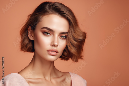 Beautiful young European woman, flawless, radiant skin cosmetology and skin care concept.