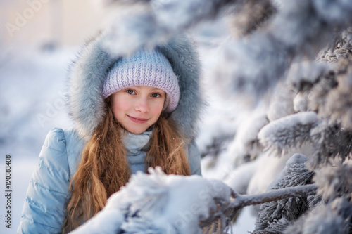 Beautiful young girl in a winter forest