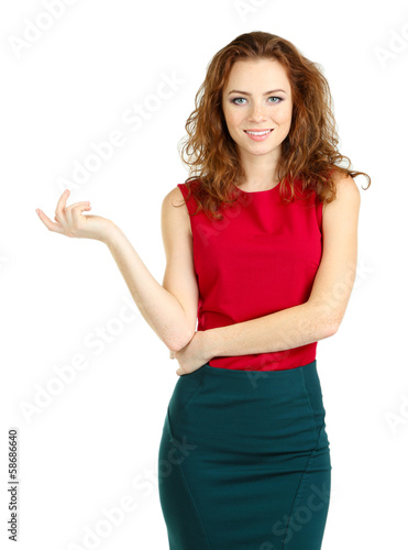 Beautiful young girl in dress isolated on white
