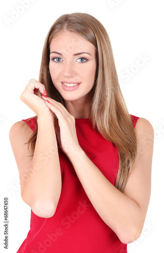 Beautiful young girl in dress isolated on white