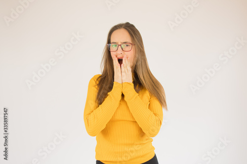 Beautiful young girl with glasses and yellow shirt