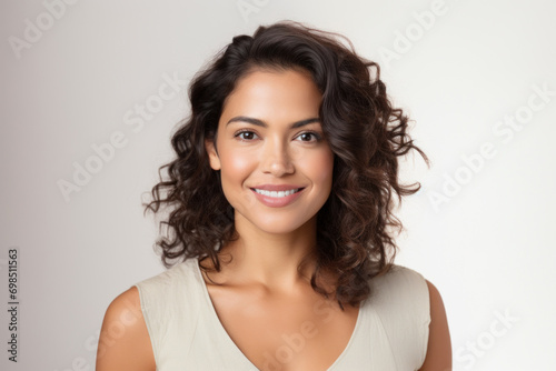 Beautiful young hispanic woman laughing isolated on white background