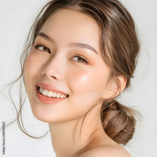 Beautiful young Korean woman with clean fresh skin, Model with healthy and shiny skin, close up portrait, beauty and spa.