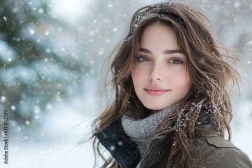 Beautiful young woman enjoying a snowy winter day