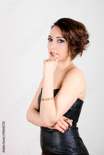 Beautiful young woman looking size in thoughtful and dreaming - white background. Portrait of a beautiful young woman