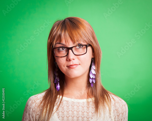 Beautiful Young Woman on Green Background