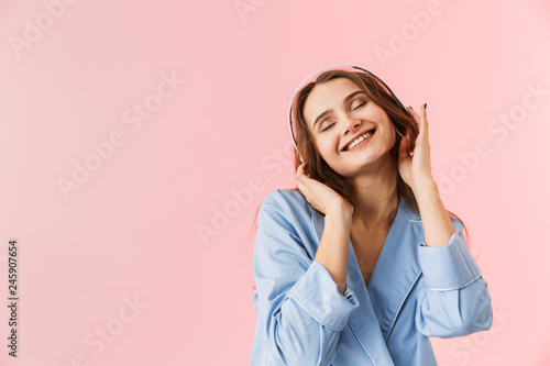 Beautiful young woman wearing pajamas standing