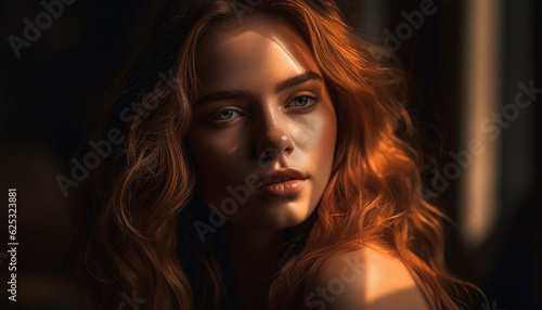 Beautiful young woman with brown hair looking confidently at camera generated by AI