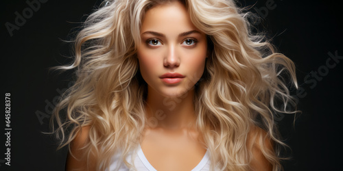 Beautiful young woman with healthy wavy long blonde hair. Hair Style, hair dye, hair care