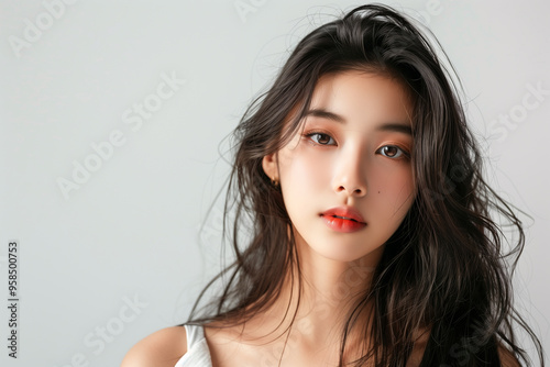 Beautiful young woman with perfect skin. Natural beauty, cosmetics, skin care concept. Copy space