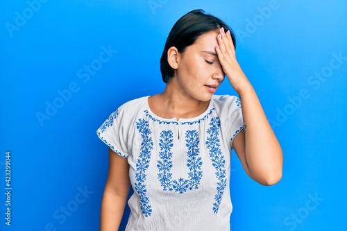 Beautiful young woman with short hair wearing casual clothes surprised with hand on head for mistake, remember error. forgot, bad memory concept.