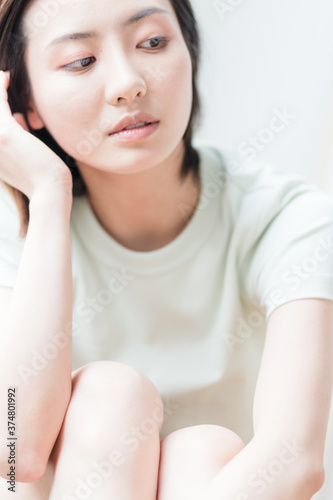 Beautiful young women sitting by the window of Asia