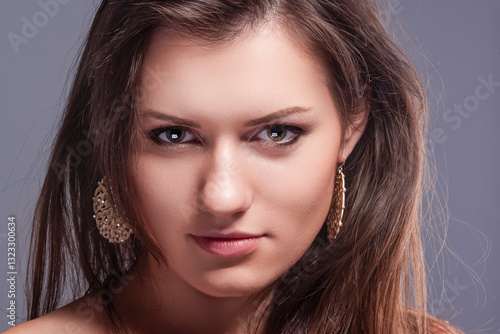 Beauty Concepts. Closeup Portrait of Long hear Healthy Woman With Healthy Beauty Silk Skin as Face Closeup Portrait