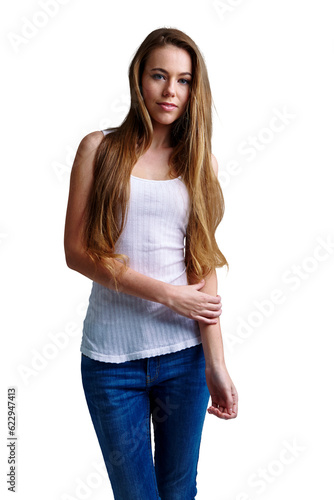 Beauty, fashion and casual with portrait of woman on png for trendy, makeup and natural. Young, style and confidence with person isolated on transparent background for cosmetics, pride and youth