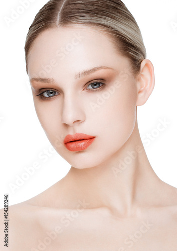 Beauty fashion model with natural makeup skin care