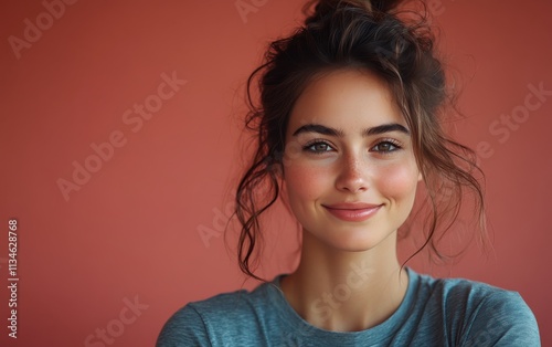 Beauty girl smiling and wearing a t-shirt in studio color background