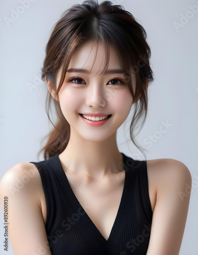 Beauty portrait of a beautiful young woman with glowing skin. Beautiful real face, beauty image. 輝く肌を持つ美しい若い女性の美容ポートレート。美しい素顔、美容イメージ。