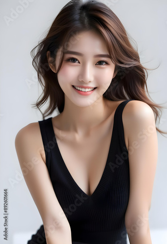 Beauty portrait of a beautiful young woman with glowing skin. Beautiful real face, beauty image. 輝く肌を持つ美しい若い女性の美容ポートレート。美しい素顔、美容イメージ。