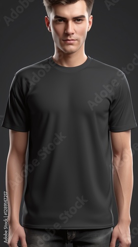 Blank black shirt mock up template, front and back view, isolated on white, plain t-shirt mockup. Tee sweater sweatshirt design presentation for print.