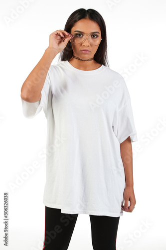 Blank t-shirt mock-up - Cool streetwear fashion girl ready for your design