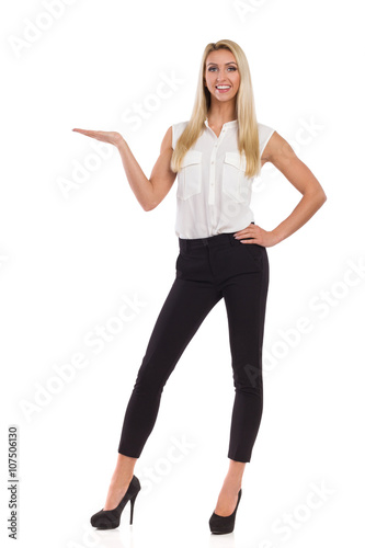 Blond Elegance Woman Presenting