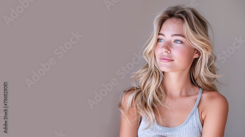 Blonde beauty model woman for skincare fashion cosmetic makeup treatment