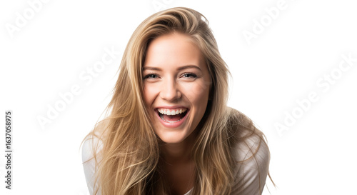 Blonde Frau – Vorbeugen beim Lachen, transparenter Hintergrund, PNG