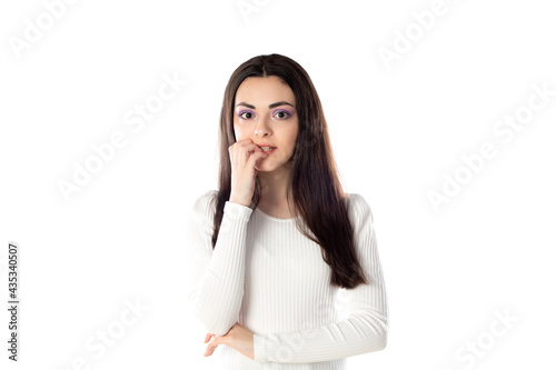 Brunette teenager girl with purple makeup