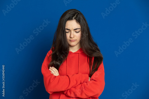 Brunette young girl wearing red jersey