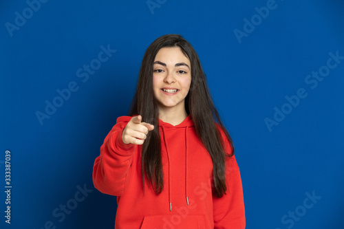Brunette young girl with a red jersey