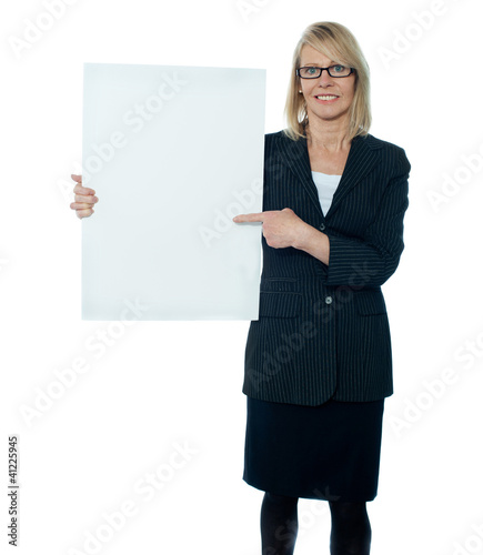 Business woman displaying placard to camera