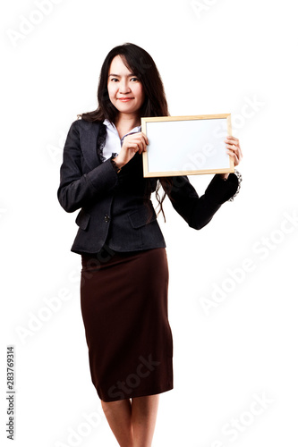 Business woman holding a blank white board