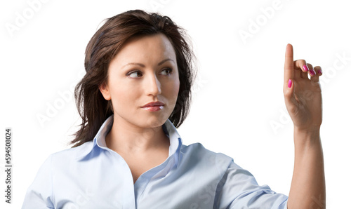 Business woman pointing on virtual screen