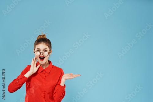 Business woman red shirt wearing glasses secretary lifestyle emotions
