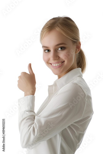 Business woman smiling and showing thumbs up,business approval,transparent background,PNG,clipart.