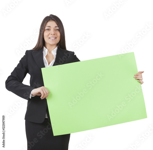 Businesswoman keeping signboard